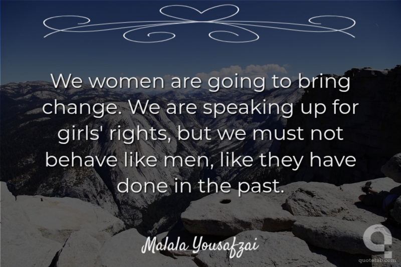 We women are going to bring change. We are speaking up for girls' rights, but we must not behave like men, like they have done in the past.