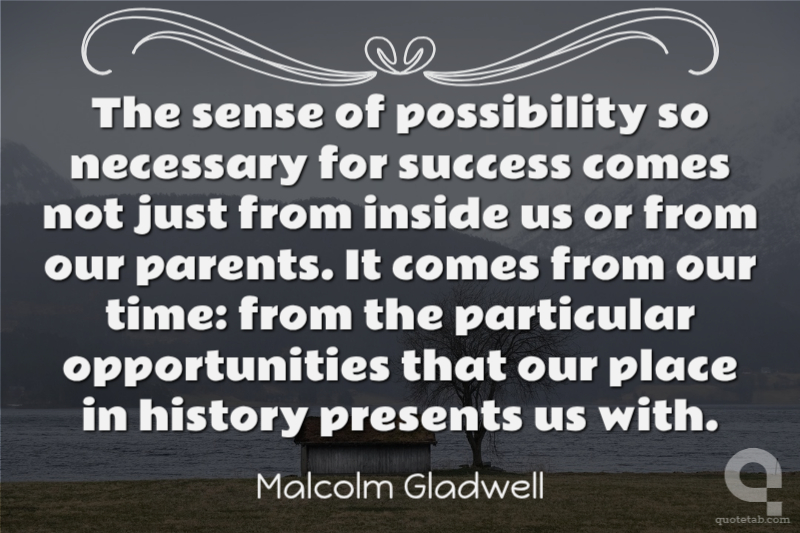 The sense of possibility so necessary for success comes not just from inside us or from our parents. It comes from our time: from the particular opportunities that our place in history presents us with.
