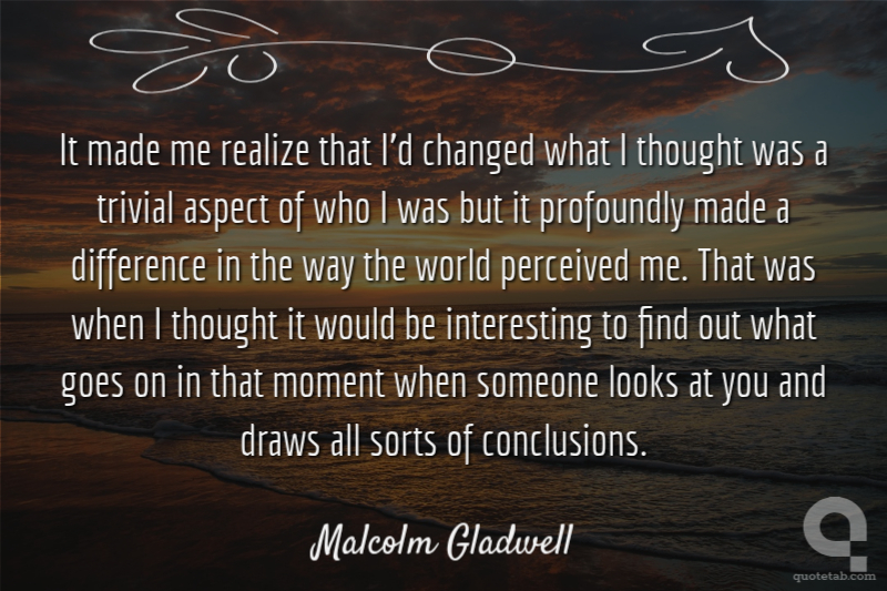 It made me realize that I'd changed what I thought was a trivial aspect of who I was but it profoundly made a difference in the way the world perceived me. That was when I thought it would be interesting to find out what goes on in that moment when someone looks at you and draws all sorts of conclusions.