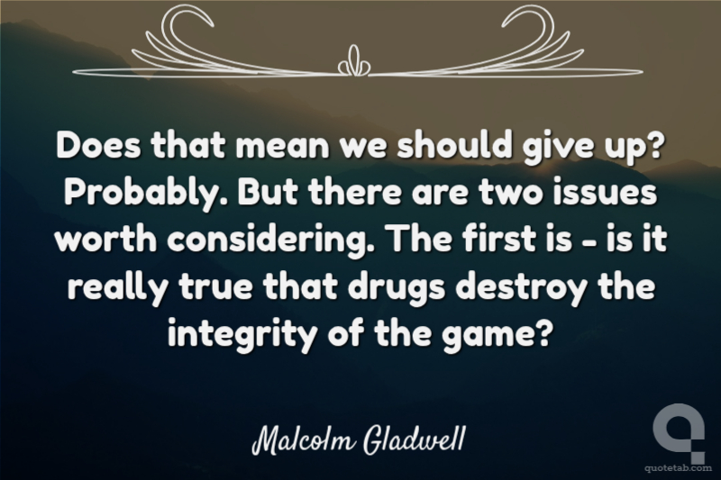Does that mean we should give up? Probably. But there are two issues worth considering. The first is - is it really true that drugs destroy the integrity of the game?