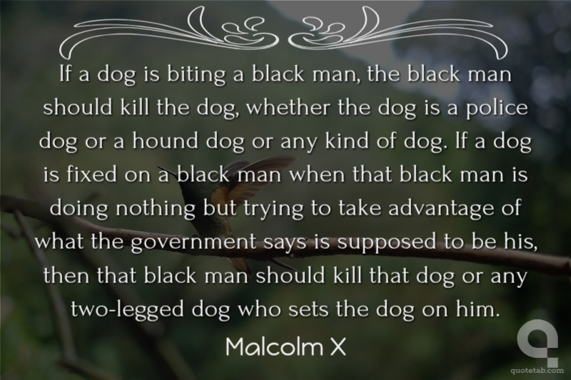 If a dog is biting a black man, the black man should kill the dog, whether the dog is a police dog or a hound dog or any kind of dog. If a dog is fixed on a black man when that black man is doing nothing but trying to take advantage of what the government says is supposed to be his, then that black man should kill that dog or any two-legged dog who sets the dog on him.