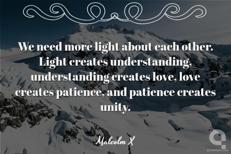 We need more light about each other. Light creates understanding, understanding creates love, love creates patience, and patience creates unity.