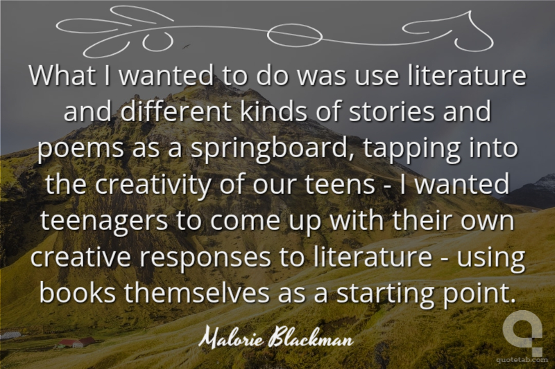 What I wanted to do was use literature and different kinds of stories and poems as a springboard, tapping into the creativity of our teens - I wanted teenagers to come up with their own creative responses to literature - using books themselves as a starting point.