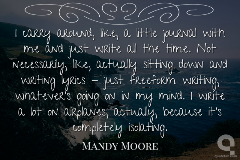 I carry around, like, a little journal with me and just write all the time. Not necessarily, like, actually sitting down and writing lyrics - just freeform writing, whatever's going on in my mind. I write a lot on airplanes, actually, because it's completely isolating.