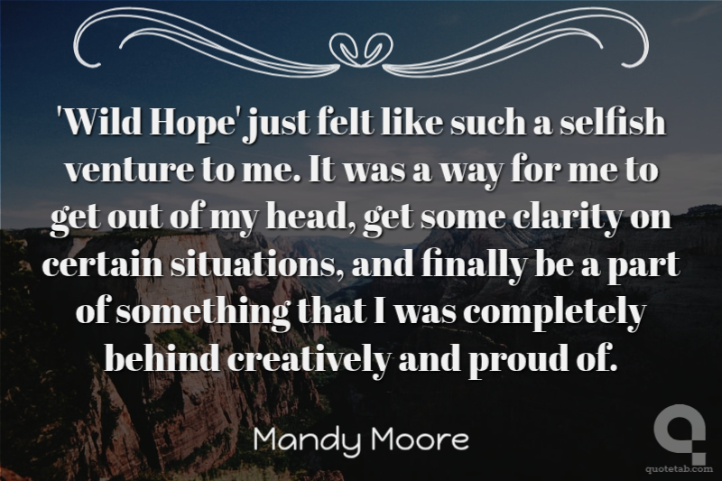 'Wild Hope' just felt like such a selfish venture to me. It was a way for me to get out of my head, get some clarity on certain situations, and finally be a part of something that I was completely behind creatively and proud of.