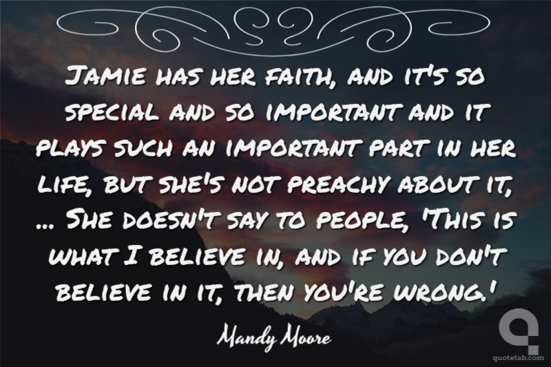 Jamie has her faith, and it's so special and so important and it plays such an important part in her life, but she's not preachy about it, ... She doesn't say to people, 'This is what I believe in, and if you don't believe in it, then you're wrong.'