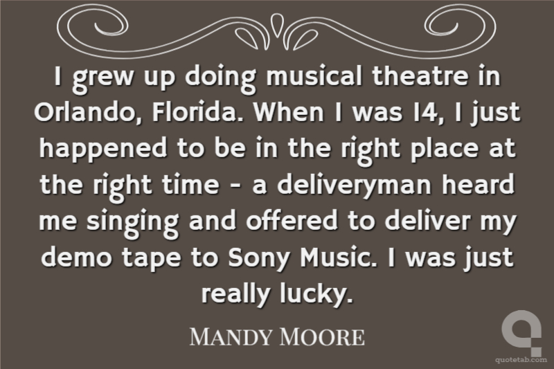 I grew up doing musical theatre in Orlando, Florida. When I was 14, I just happened to be in the right place at the right time - a deliveryman heard me singing and offered to deliver my demo tape to Sony Music. I was just really lucky.