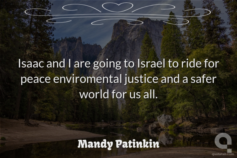 Isaac and I are going to Israel to ride for peace enviromental justice and a safer world for us all.