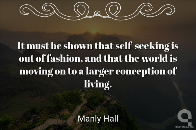It must be shown that self-seeking is out of fashion, and that the world is moving on to a larger conception of living.