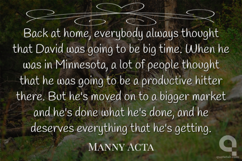Back at home, everybody always thought that David was going to be big time. When he was in Minnesota, a lot of people thought that he was going to be a productive hitter there. But he's moved on to a bigger market and he's done what he's done, and he deserves everything that he's getting.