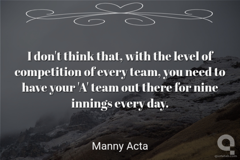 I don't think that, with the level of competition of every team, you need to have your 'A' team out there for nine innings every day.