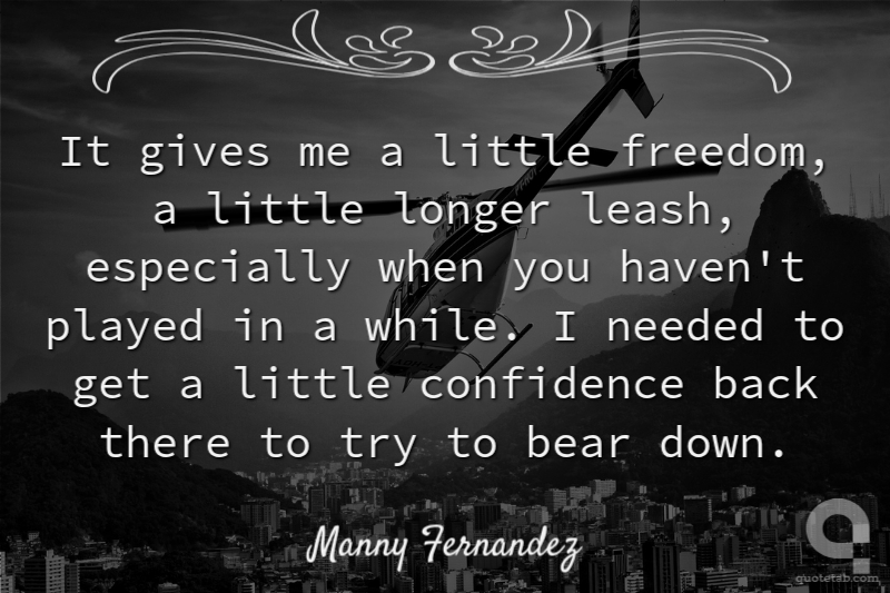 It gives me a little freedom, a little longer leash, especially when you haven't played in a while. I needed to get a little confidence back there to try to bear down.