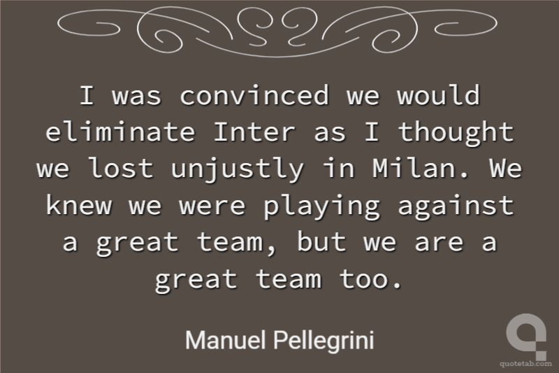 I was convinced we would eliminate Inter as I thought we lost unjustly in Milan. We knew we were playing against a great team, but we are a great team too.