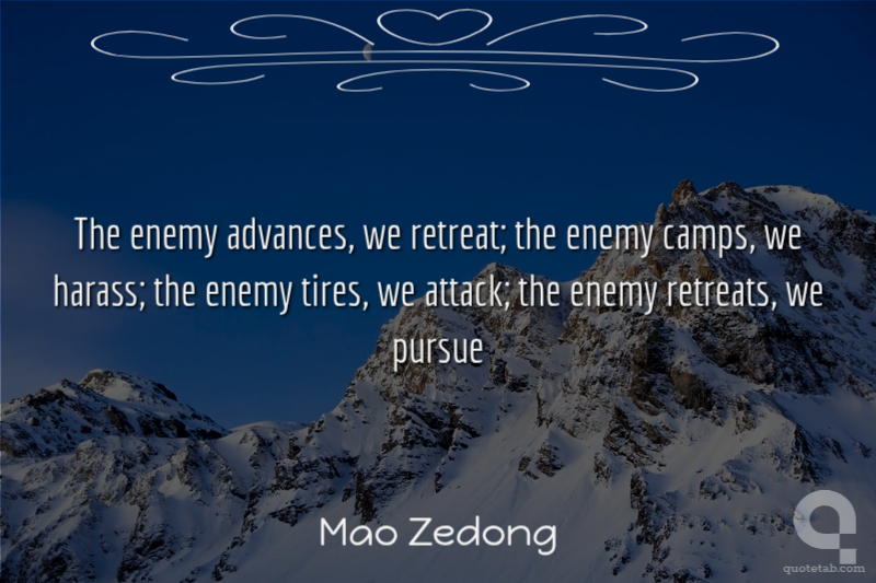 The enemy advances, we retreat; the enemy camps, we harass; the enemy tires, we attack; the enemy retreats, we pursue