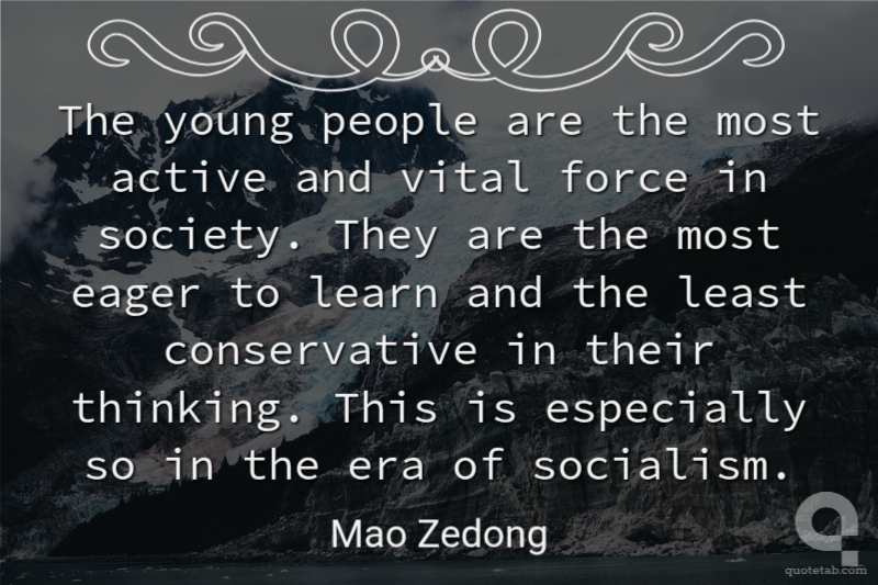 The young people are the most active and vital force in society. They are the most eager to learn and the least conservative in their thinking. This is especially so in the era of socialism.