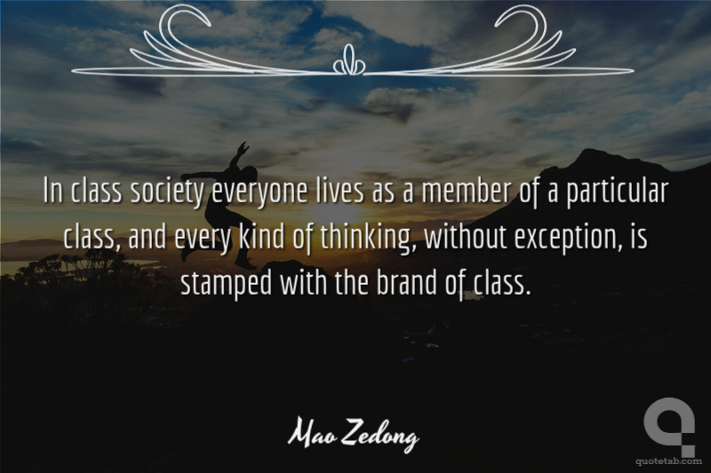 In class society everyone lives as a member of a particular class, and every kind of thinking, without exception, is stamped with the brand of class.