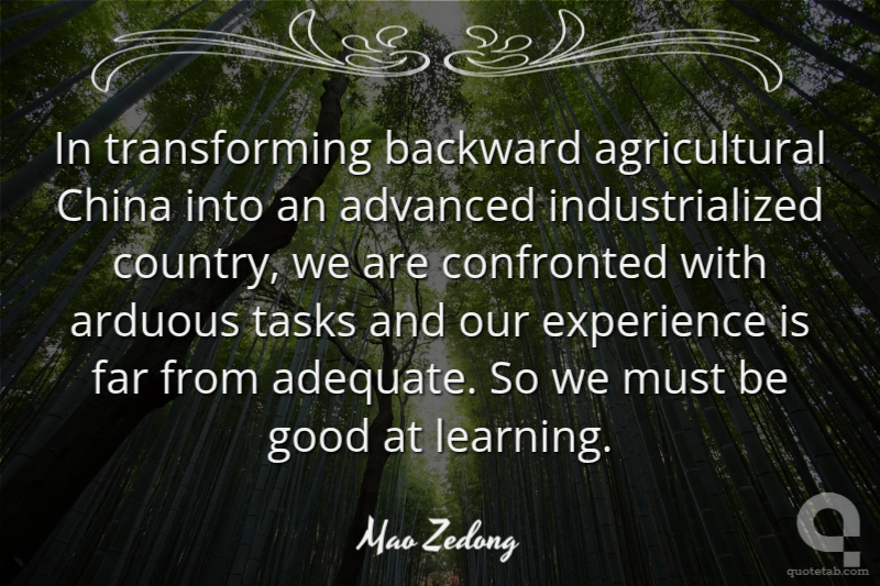 In transforming backward agricultural China into an advanced industrialized country, we are confronted with arduous tasks and our experience is far from adequate. So we must be good at learning.
