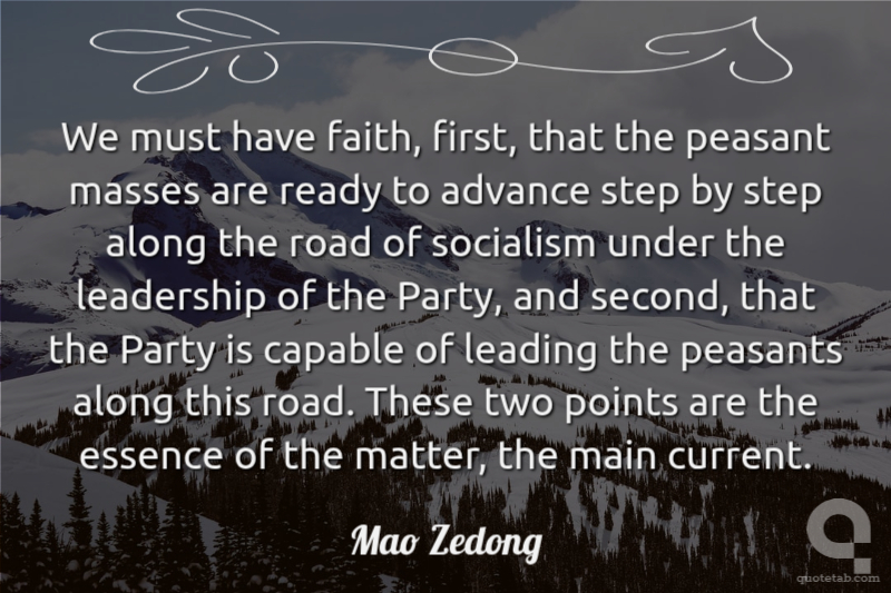 We must have faith, first, that the peasant masses are ready to advance step by step along the road of socialism under the leadership of the Party, and second, that the Party is capable of leading the peasants along this road. These two points are the essence of the matter, the main current.