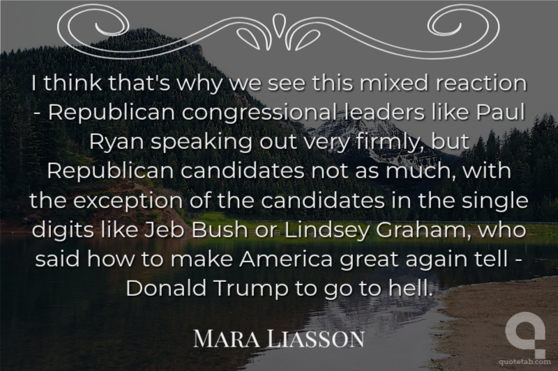 I think that's why we see this mixed reaction - Republican congressional leaders like Paul Ryan speaking out very firmly, but Republican candidates not as much, with the exception of the candidates in the single digits like Jeb Bush or Lindsey Graham, who said how to make America great again tell - Donald Trump to go to hell.