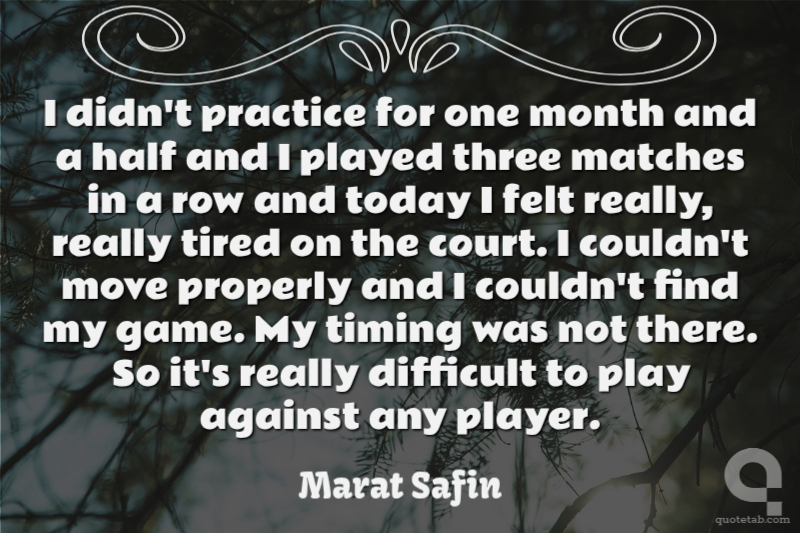 I didn't practice for one month and a half and I played three matches in a row and today I felt really, really tired on the court. I couldn't move properly and I couldn't find my game. My timing was not there. So it's really difficult to play against any player.