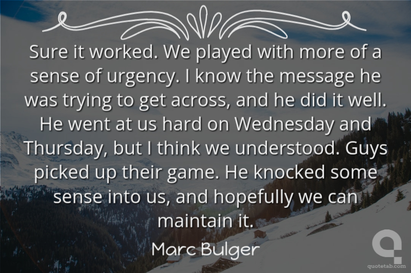 Sure it worked. We played with more of a sense of urgency. I know the message he was trying to get across, and he did it well. He went at us hard on Wednesday and Thursday, but I think we understood. Guys picked up their game. He knocked some sense into us, and hopefully we can maintain it.