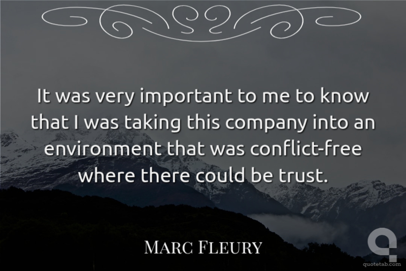It was very important to me to know that I was taking this company into an environment that was conflict-free where there could be trust.