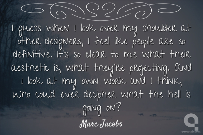 I guess when I look over my shoulder at other designers, I feel like people are so definitive. It's so clear to me what their aesthetic is, what they're projecting. And I look at my own work and I think, Who could ever decipher what the hell is going on?
