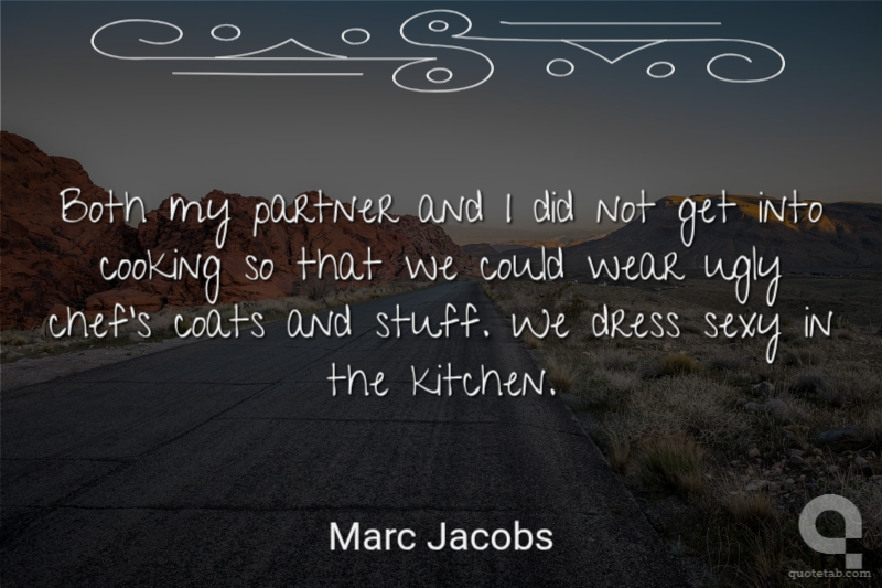 Both my partner and I did not get into cooking so that we could wear ugly chef's coats and stuff. We dress sexy in the kitchen.
