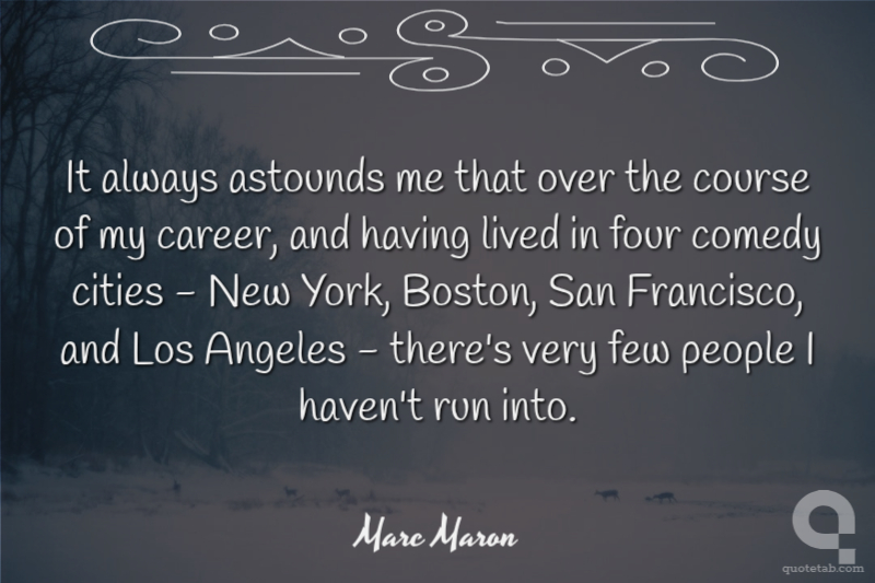 It always astounds me that over the course of my career, and having lived in four comedy cities - New York, Boston, San Francisco, and Los Angeles - there's very few people I haven't run into.