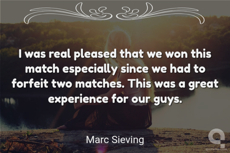 I was real pleased that we won this match especially since we had to forfeit two matches. This was a great experience for our guys.
