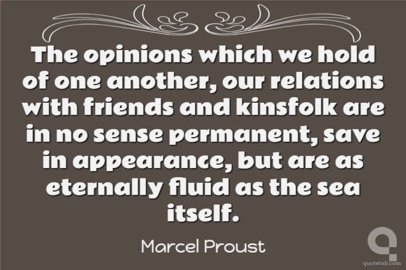 The opinions which we hold of one another, our relations with friends and kinsfolk are in no sense permanent, save in appearance, but are as eternally fluid as the sea itself.