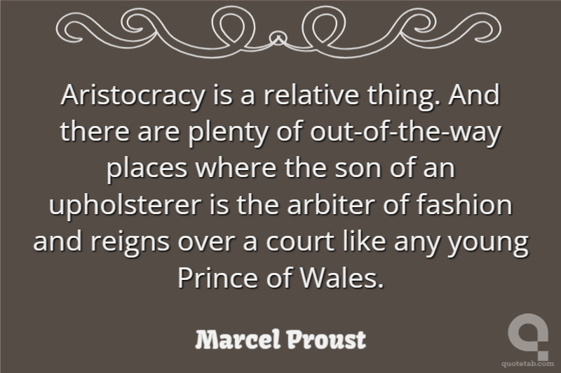 Aristocracy is a relative thing. And there are plenty of out-of-the-way places where the son of an upholsterer is the arbiter of fashion and reigns over a court like any young Prince of Wales.