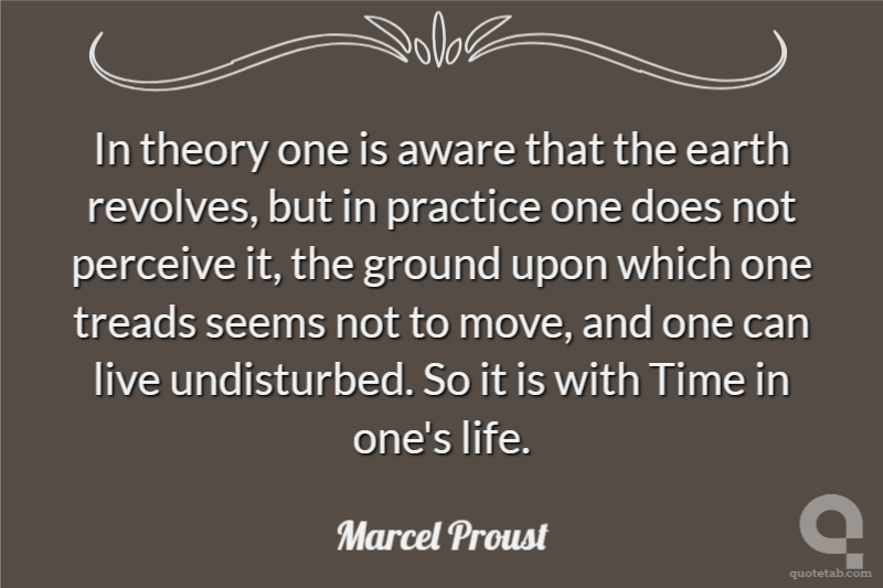 In theory one is aware that the earth revolves, but in practice one does not perceive it, the ground upon which one treads seems not to move, and one can live undisturbed. So it is with Time in one's life.