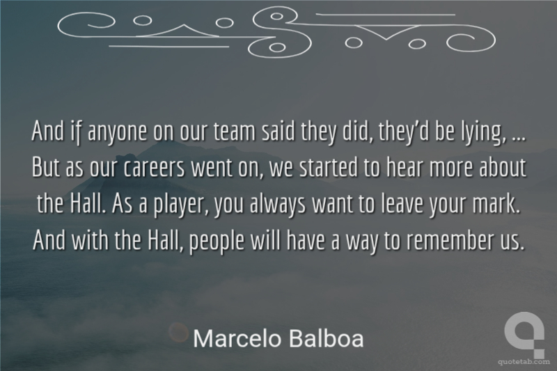 And if anyone on our team said they did, they'd be lying, ... But as our careers went on, we started to hear more about the Hall. As a player, you always want to leave your mark. And with the Hall, people will have a way to remember us.