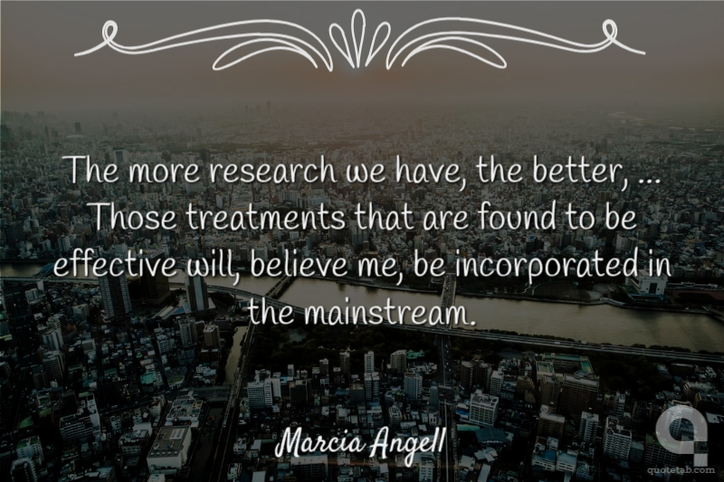 The more research we have, the better, ... Those treatments that are found to be effective will, believe me, be incorporated in the mainstream.