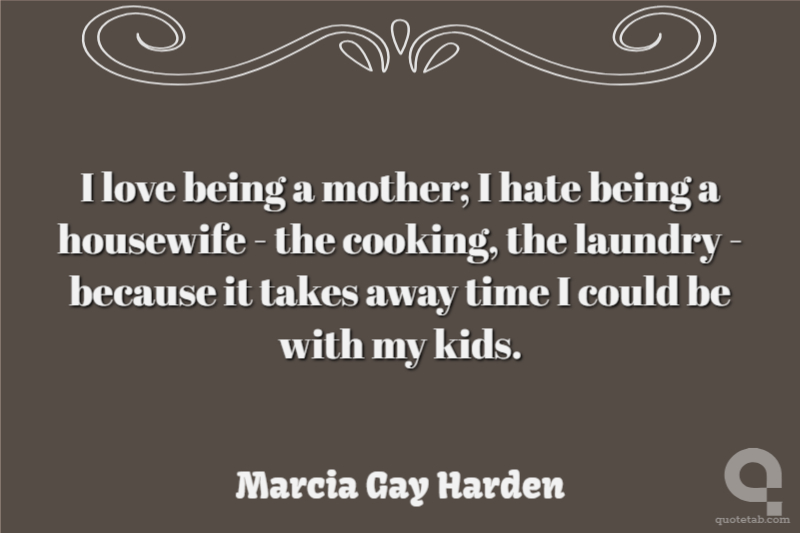 I love being a mother; I hate being a housewife - the cooking, the laundry - because it takes away time I could be with my kids.