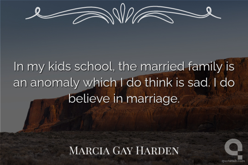 In my kids school, the married family is an anomaly which I do think is sad. I do believe in marriage.