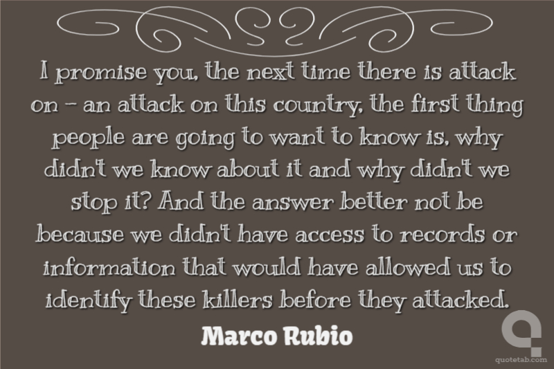I promise you, the next time there is attack on - an attack on this country, the first thing people are going to want to know is, why didn't we know about it and why didn't we stop it? And the answer better not be because we didn't have access to records or information that would have allowed us to identify these killers before they attacked.