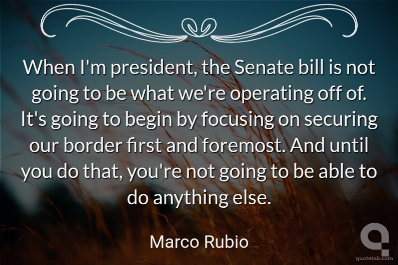 When I'm president, the Senate bill is not going to be what we're operating off of. It's going to begin by focusing on securing our border first and foremost. And until you do that, you're not going to be able to do anything else.