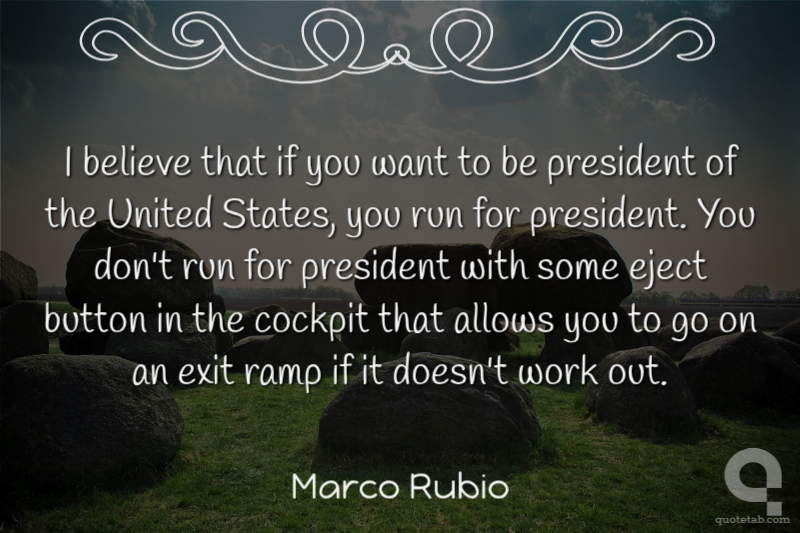 I believe that if you want to be president of the United States, you run for president. You don't run for president with some eject button in the cockpit that allows you to go on an exit ramp if it doesn't work out.
