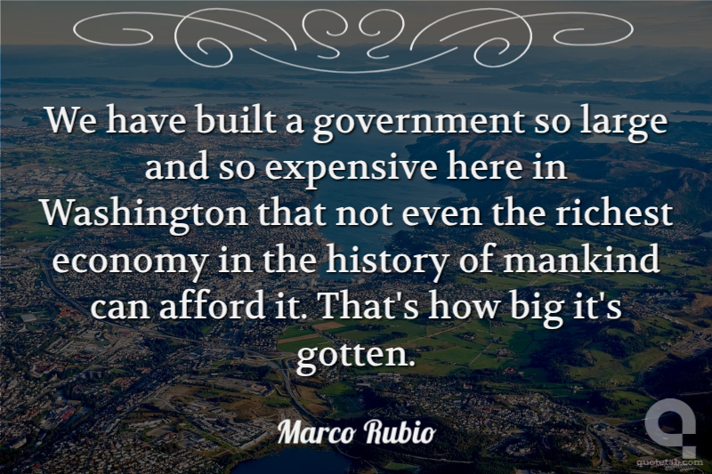 We have built a government so large and so expensive here in Washington that not even the richest economy in the history of mankind can afford it. That's how big it's gotten.