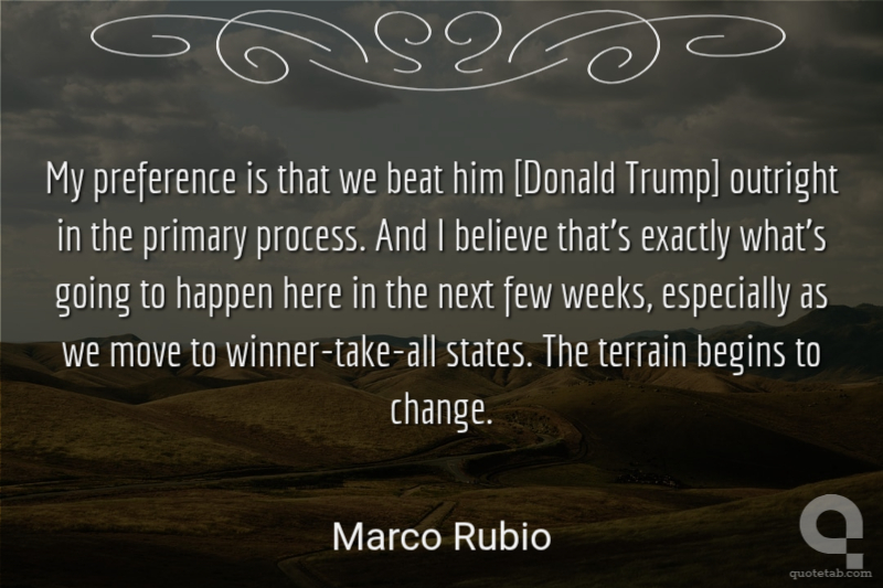 My preference is that we beat him [Donald Trump] outright in the primary process. And I believe that's exactly what's going to happen here in the next few weeks, especially as we move to winner-take-all states. The terrain begins to change.