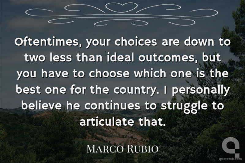 Oftentimes, your choices are down to two less than ideal outcomes, but you have to choose which one is the best one for the country. I personally believe he continues to struggle to articulate that.