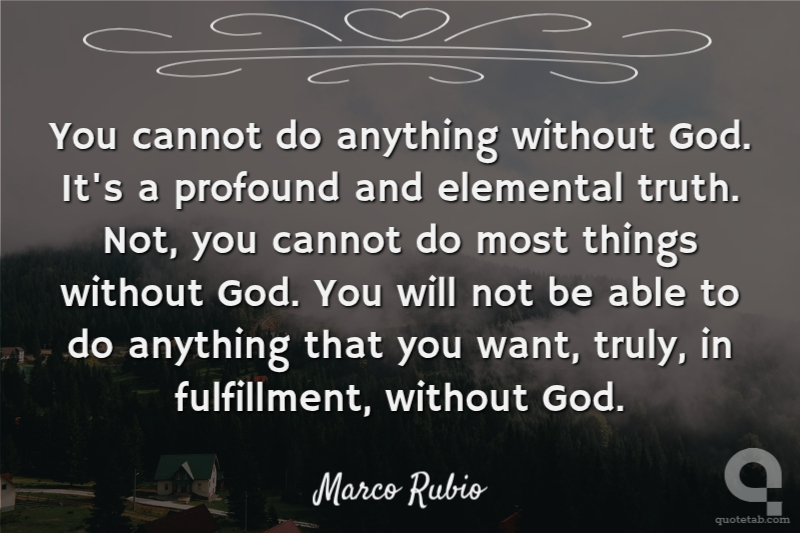 You cannot do anything without God. It's a profound and elemental truth. Not, you cannot do most things without God. You will not be able to do anything that you want, truly, in fulfillment, without God.