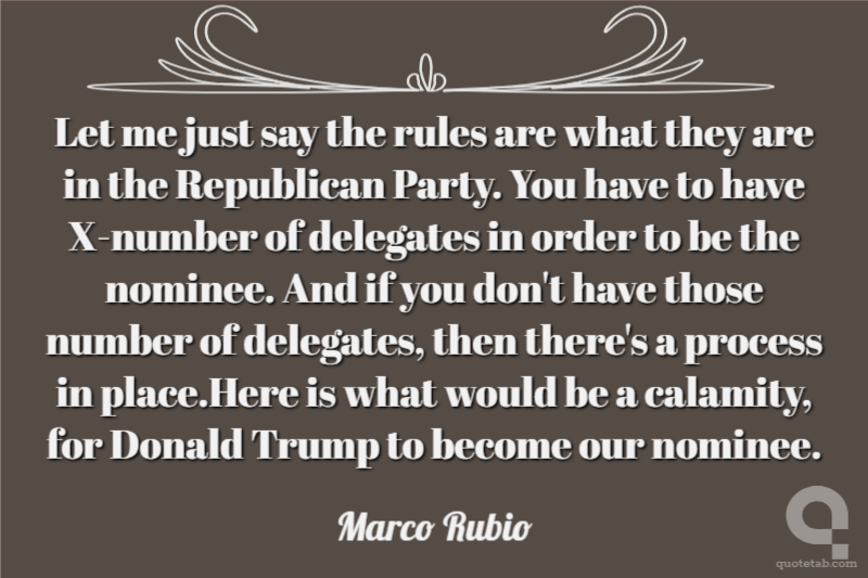 Let me just say the rules are what they are in the Republican Party. You have to have X-number of delegates in order to be the nominee. And if you don't have those number of delegates, then there's a process in place.Here is what would be a calamity, for Donald Trump to become our nominee.