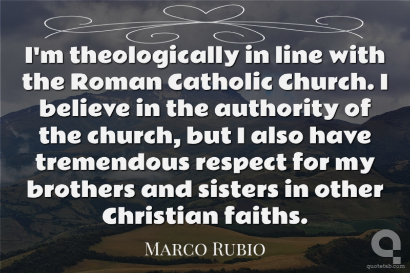 I'm theologically in line with the Roman Catholic Church. I believe in the authority of the church, but I also have tremendous respect for my brothers and sisters in other Christian faiths.