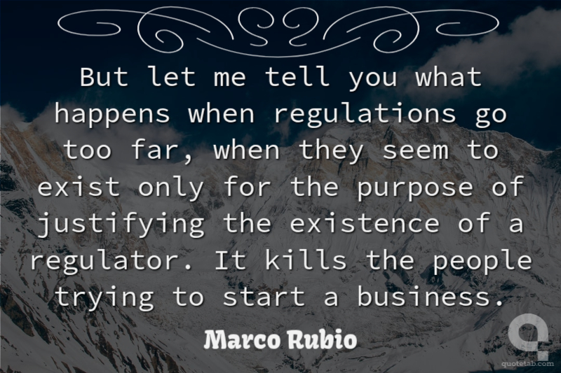 But let me tell you what happens when regulations go too far, when they seem to exist only for the purpose of justifying the existence of a regulator. It kills the people trying to start a business.