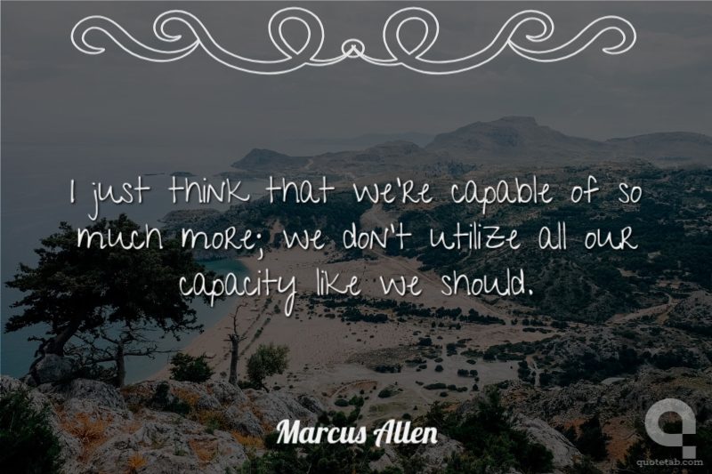 I just think that we're capable of so much more; we don't utilize all our capacity like we should.