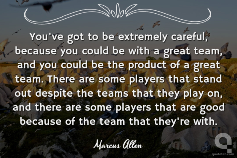 You've got to be extremely careful, because you could be with a great team, and you could be the product of a great team. There are some players that stand out despite the teams that they play on, and there are some players that are good because of the team that they're with.
