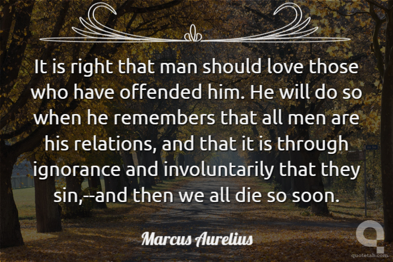 It is right that man should love those who have offended him. He will do so when he remembers that all men are his relations, and that it is through ignorance and involuntarily that they sin,--and then we all die so soon.
